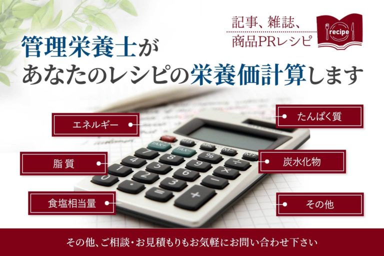 特に今は表示が必須になったほか、健康や栄養面を考えて掲載する企業さまはもちろん、表示を目安に食品やメニューを購入している方が増えてきています。もし、まだ掲載していないけれど、お客様に役立つ情報の一つとして掲載したいという方は管理栄養士の横川仁美が、メニューやレシピの栄養価を算出させて頂きます。
