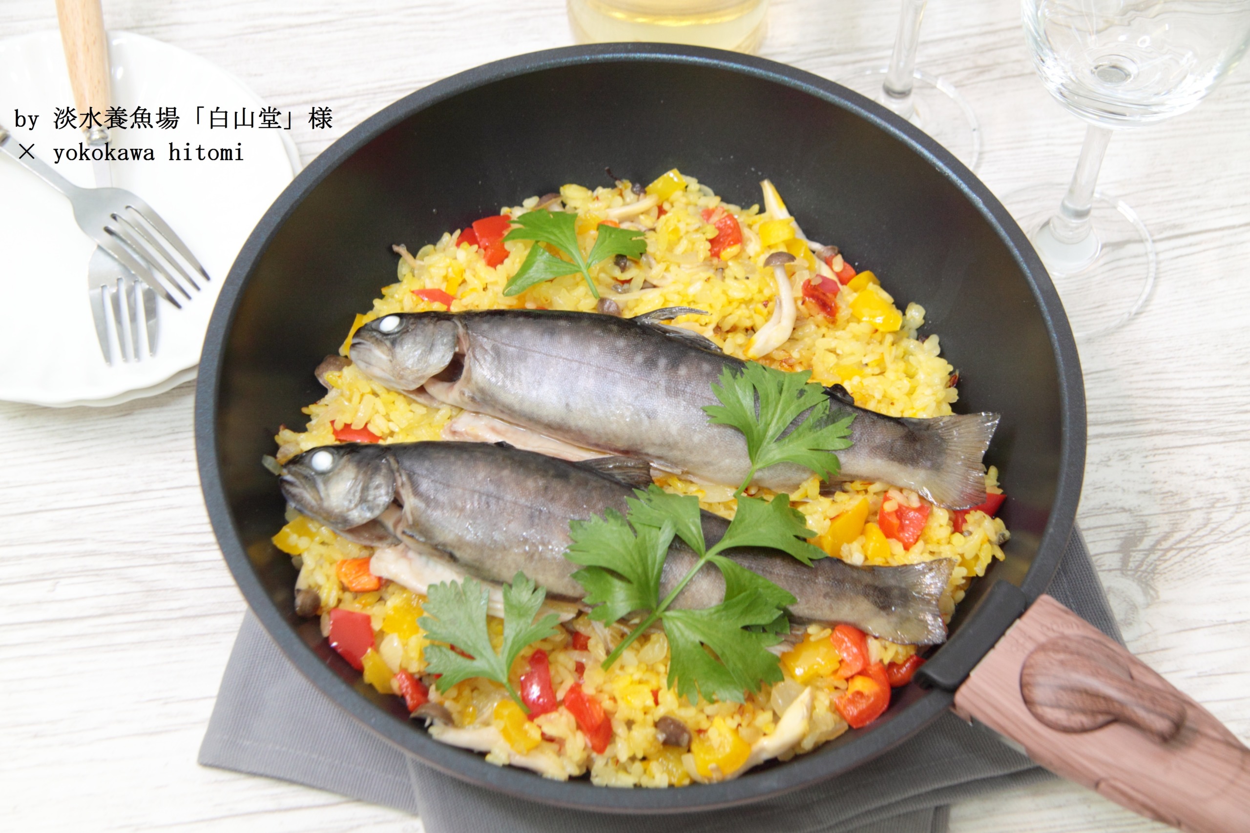 薬機法にも強い管理栄養士 横川仁美( @starshiplovely )です。淡水養魚場「白山堂」様のサイトに「イワナのパエリア」を掲載中です。見た目が華やかなので、フライパンごと食卓に出してもよし!ホームパーティなどにも喜ばれる1品です。お好みの具材を入れて美味しく召し上がってみてください。