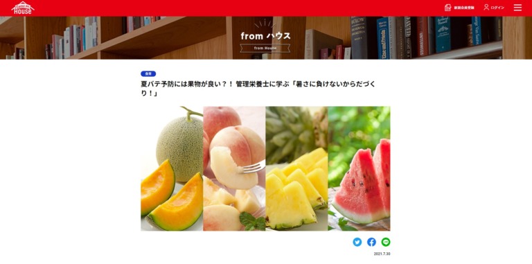 薬機法にも強い管理栄養士 横川仁美( @starshiplovely )がハウス食品グループ株式会社様のWeb会員サイト「ComeOnHouse」における「fromハウス」で「夏バテ予防には果物が良い?! 管理栄養士に学ぶ「暑さに負けないからだづくり!」」を執筆させていただきました。