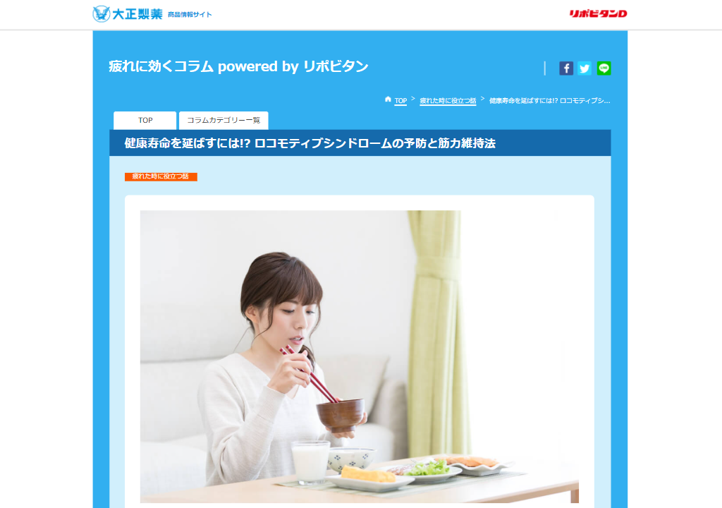 大正製薬さまの「疲れに効くコラム powered by リポビタン」で「健康寿命を延ばすには!? ロコモティブシンドロームの予防と筋力維持法」について執筆させていただきました。