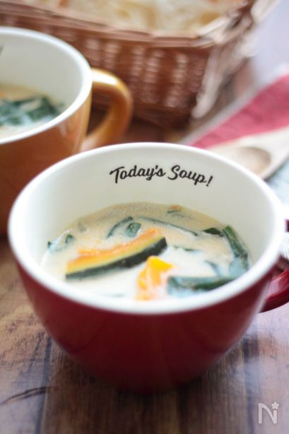 レシピサイト「ナディア」で、「かぼちゃとほうれん草の豆乳味噌スープ」を掲載中です。