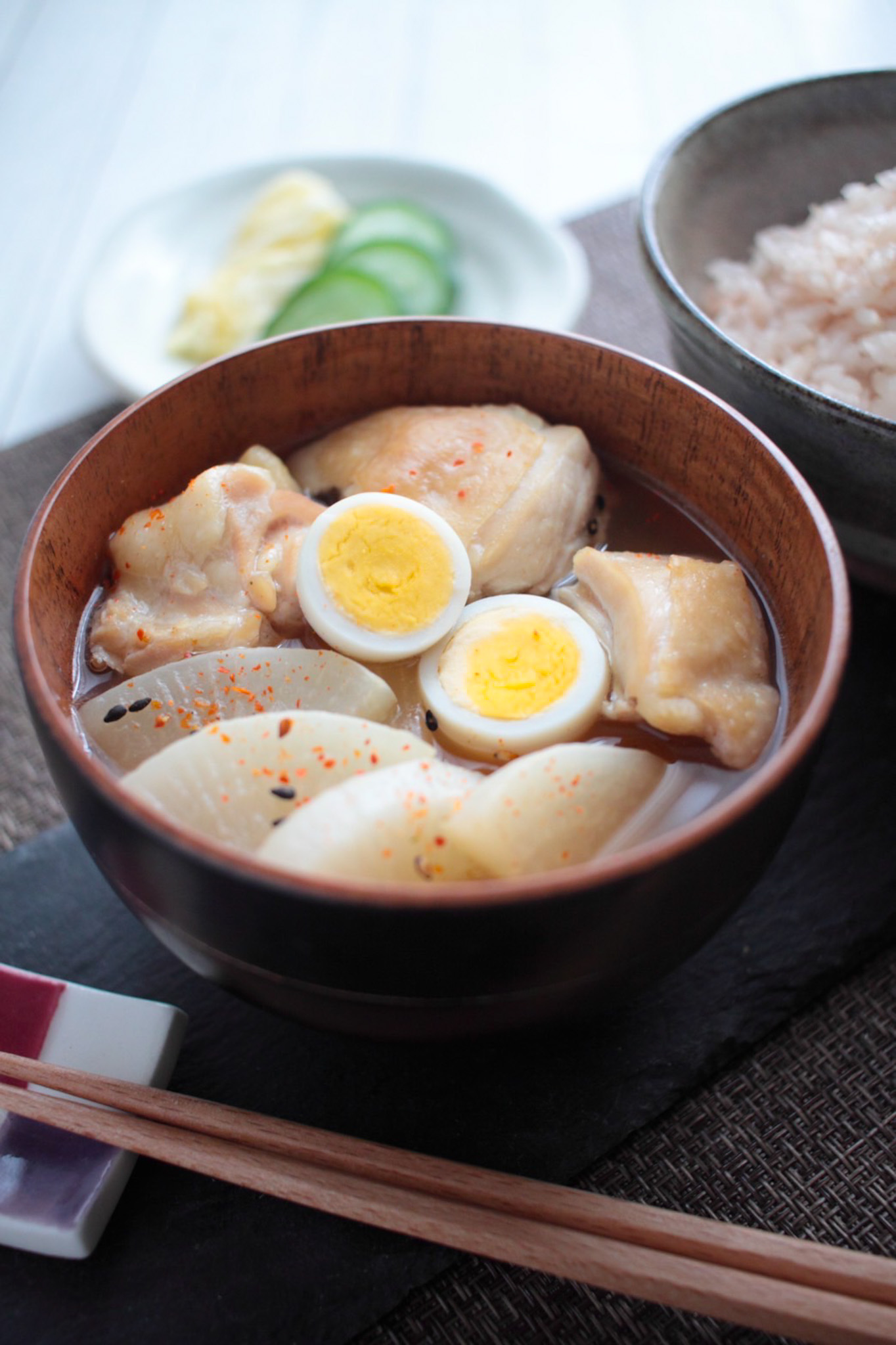 レシピサイト「ナディア」で、「うずらの卵入り!鶏肉と大根のお味噌汁」を掲載中です。
