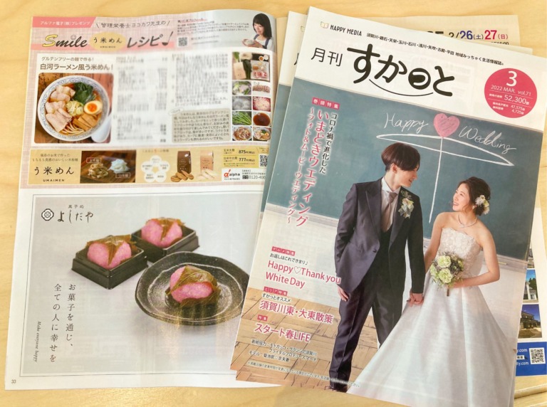 ただ今、地域みっちゃく生活情報誌『すかっと』3月号にアルファ電子(株)様の「う米めん」をラーメン風にアレンジ!『白河ラーメン風う米めん』 を掲載中です。