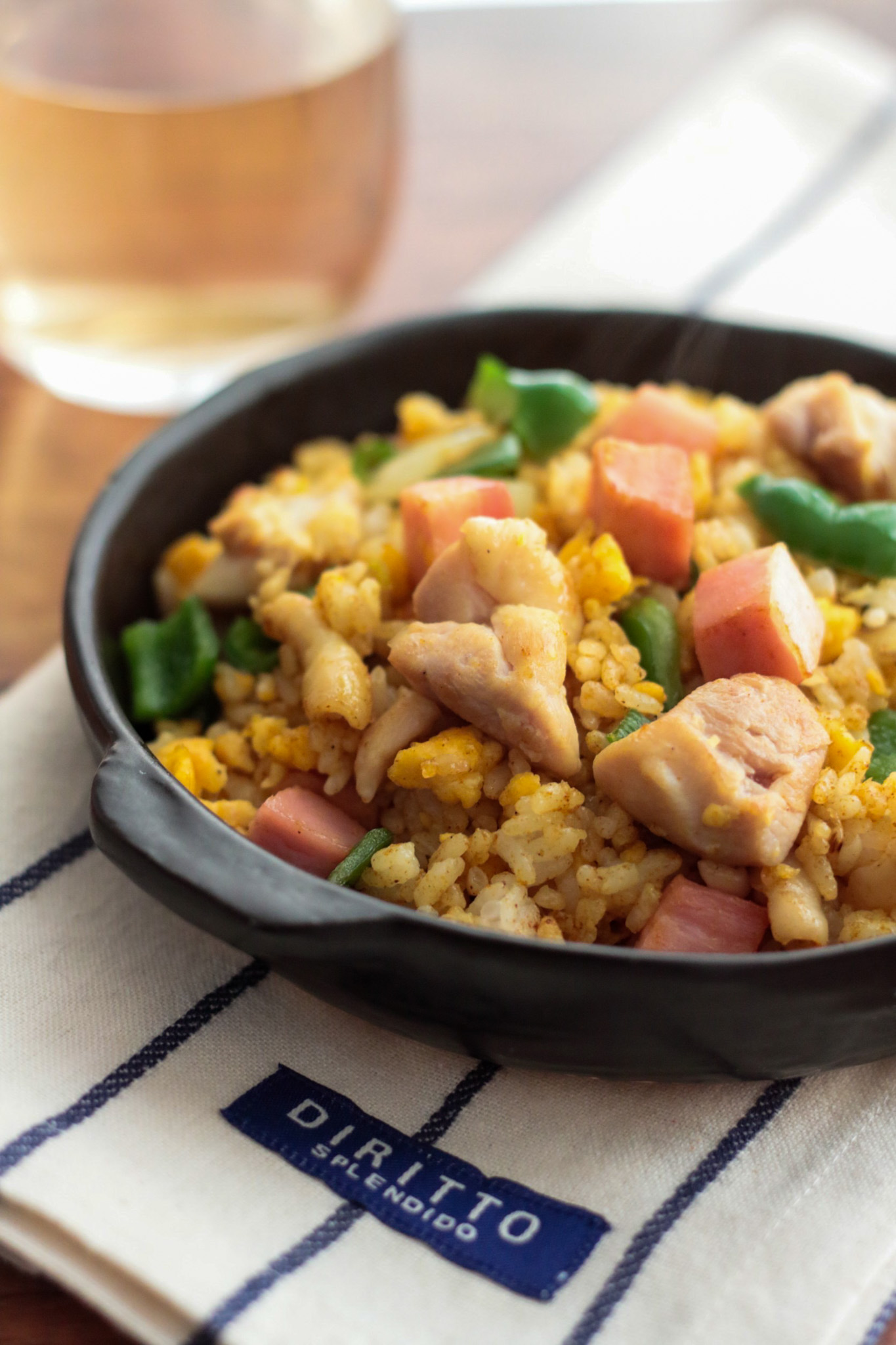 余りがちなピーマン、玉ねぎ、にんにくを使って、カレーピラフはいかがでしょうか。 鶏もも肉や角切りベーコンも入れることで、食べ応えもばっちり。 カレー粉のスパイシーな香りで食事も進みます。