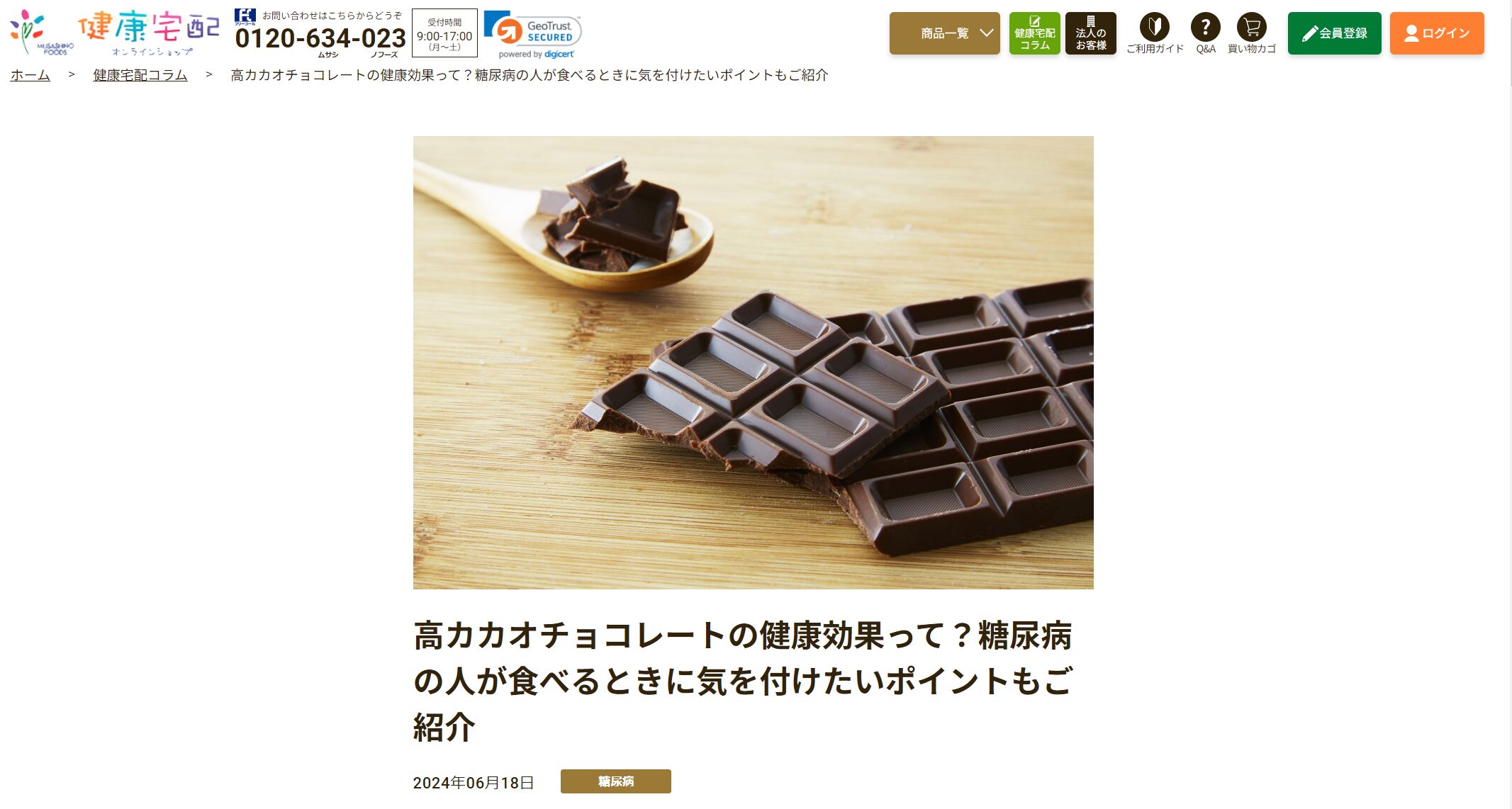 株式会社武蔵野フーズさま「健康宅配オンラインショップ」にて「高カカオチョコレートの健康効果って?糖尿病の人が食べるときに気を付けたいポイントもご紹介」を執筆させていただきました。