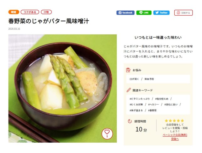 【レシピ】春野菜のじゃがバター風味噌汁(カマエイド様)