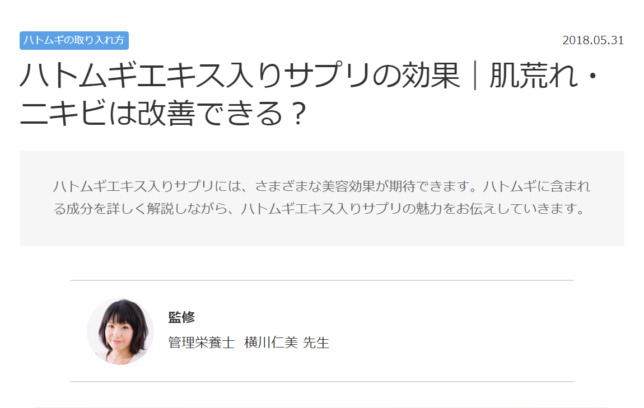 管理栄養士 横川仁美が ヘルスケア大学×KOSE様のサイトで監修させていただきました。 ハトムギエキス入りサプリの効果|肌荒れ・ニキビは改善できる? 美容や健康にハトムギエキス入りサプリが気になる、もしくは 食べていらっしゃる方は何かの参考にな... -