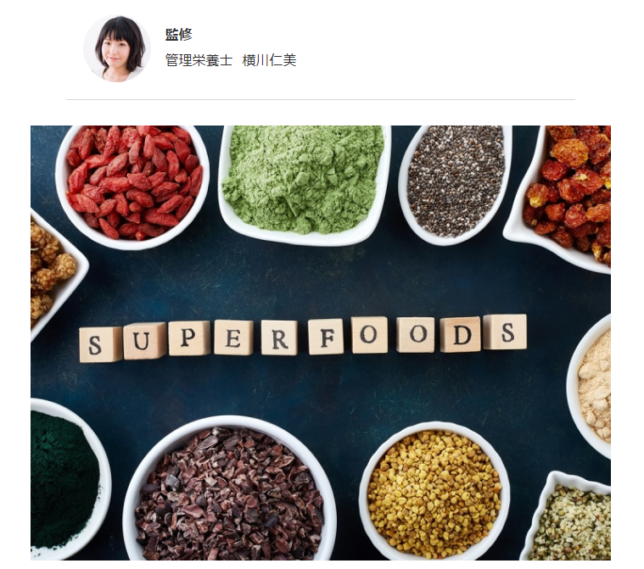 管理栄養士 横川仁美が 「あしたのカラダ」サイトさまで監修させていただきました。 健康や美容に効果あり?話題のスーパーフードとは 今回はスーパーフードです。 いろんな種類をご紹介させて頂いていますので取り入れやすいものをみつける参考になれば... -