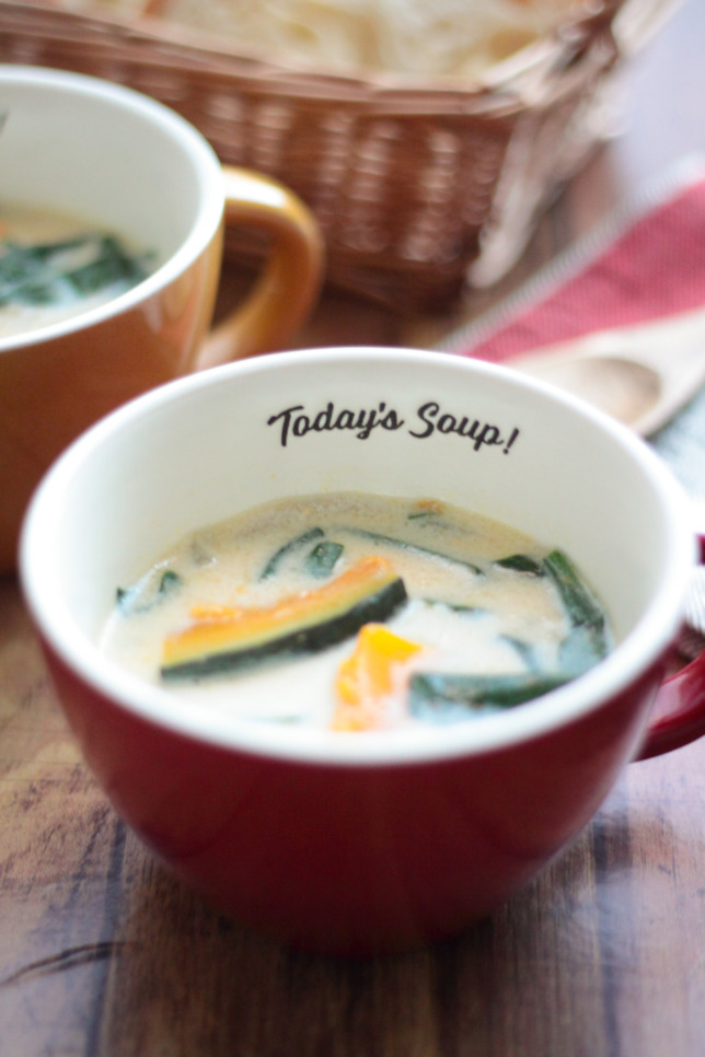 【レシピ】かぼちゃとほうれん草の豆乳味噌スープ